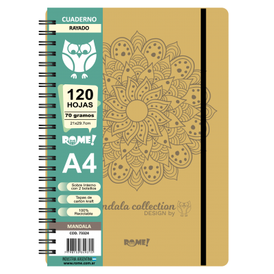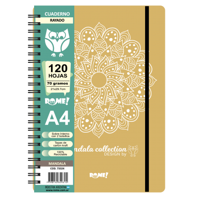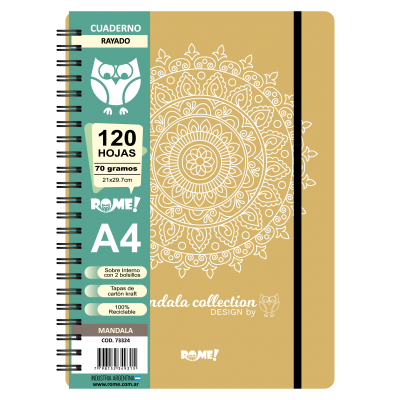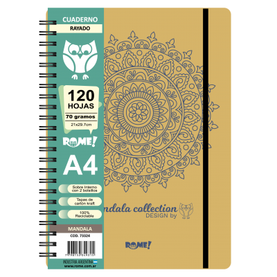 Cuaderno A4 Mandala con elástico x120 hojas rayadas Rome