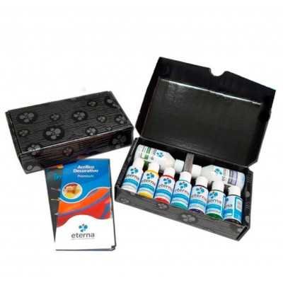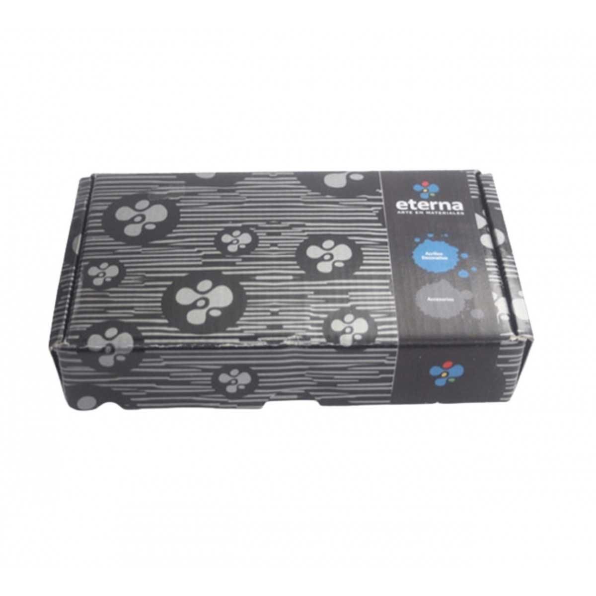 Práctico set que contiene 7 acrílicos decorativos + 1 Barniz Horneable + 1 Barniz satinado. Presentado en una una caja de cartón resistente.