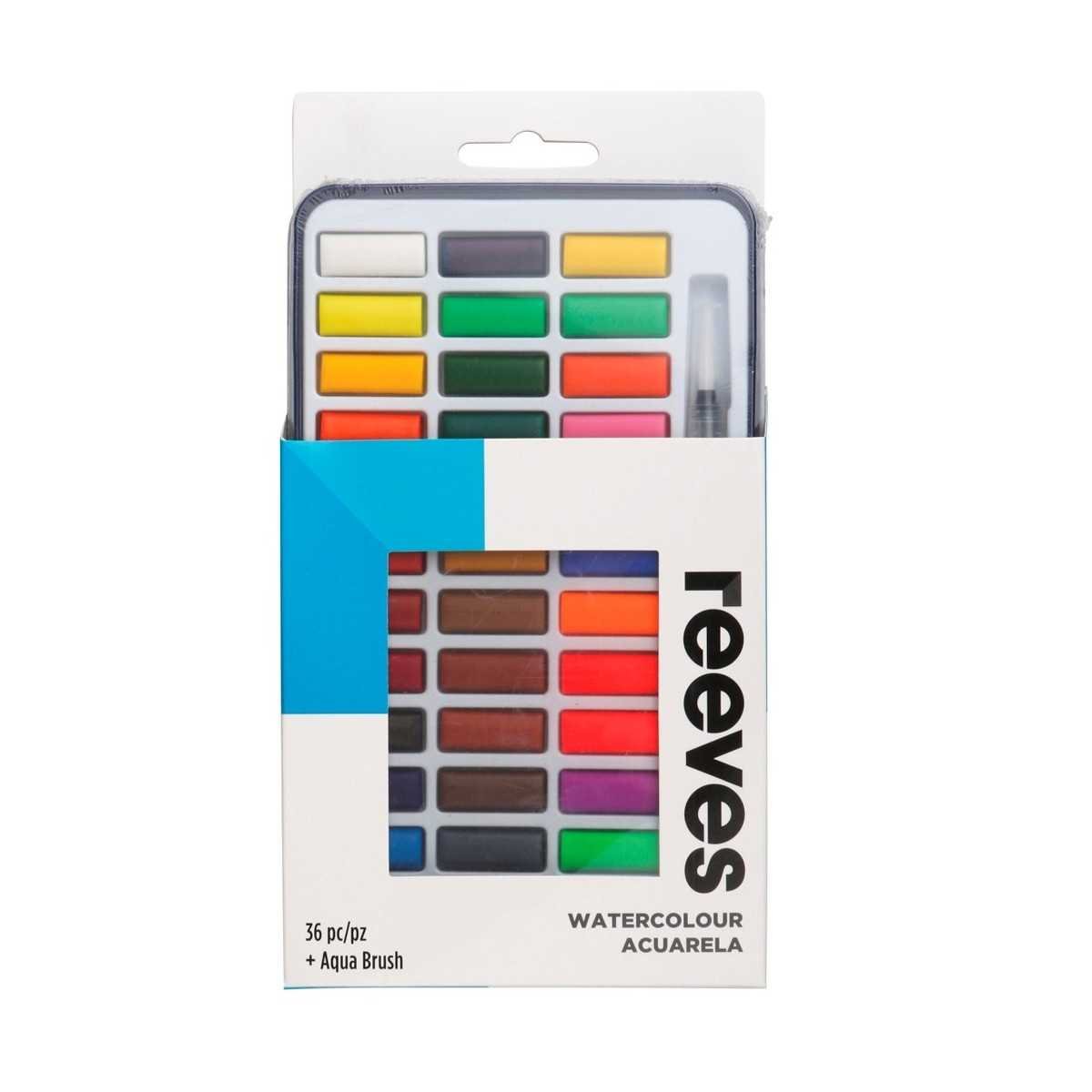 Set Acuarela estuche de Metal x36 pastillas +1 Pincel Recargable Reeves