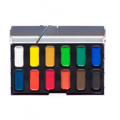 Presentación de bolsillo conteniendo12 pastillas de colores surtidos y un pincel.