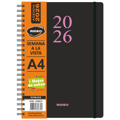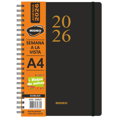 Agenda A4 semanal Ecoblack Rideo