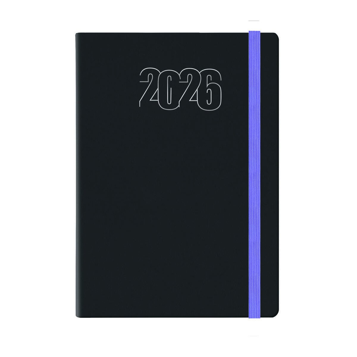 Agenda N°7 Diaria Winer borde pintado negro con elastico lavanda encuadernada Talbot