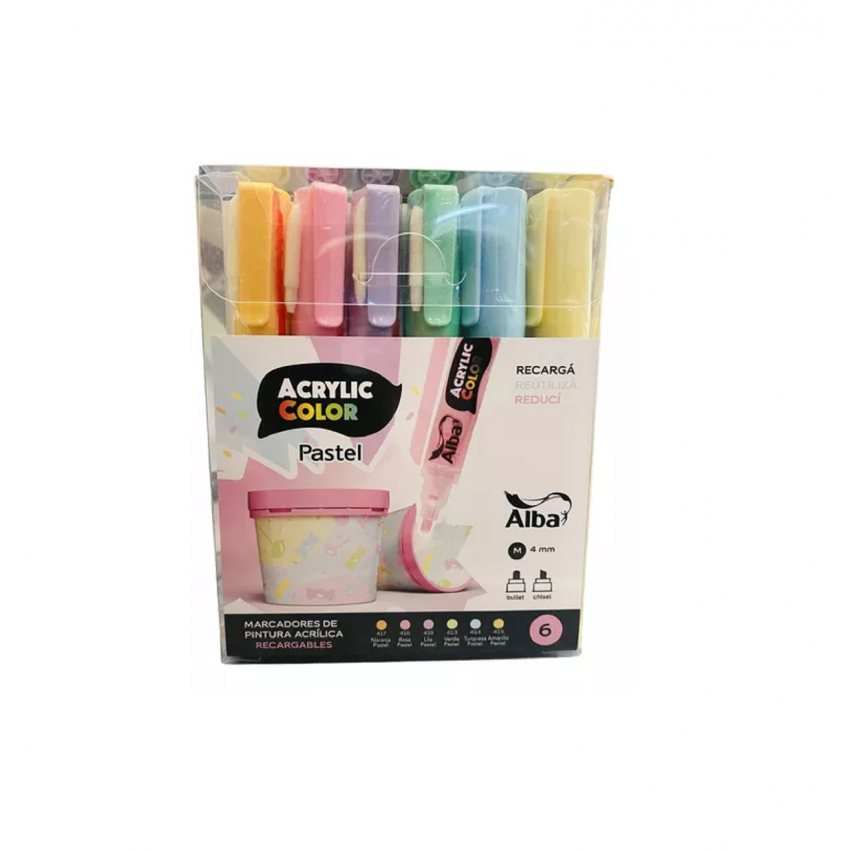Set de marcadores Acrylic Colour 4 MM x 6 colores pasteles Alba