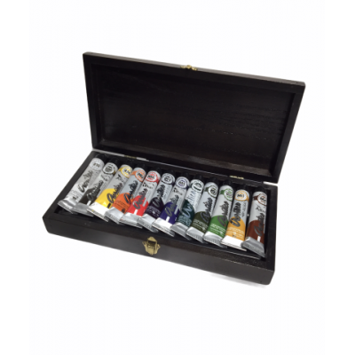 Set Valija de madera para artista con 12 pomos de acrílico calidad profesional de 18 ml. Ideal para regalo