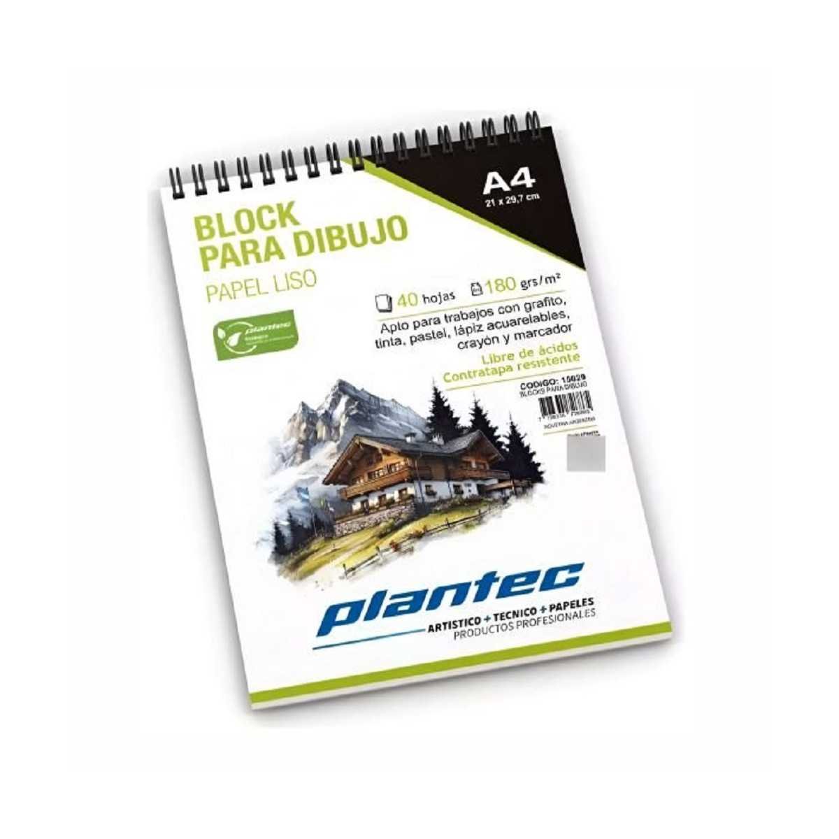 Block A4 para dibujo de 180 gramos Blanco Liso x40 hojas anillado Plantec