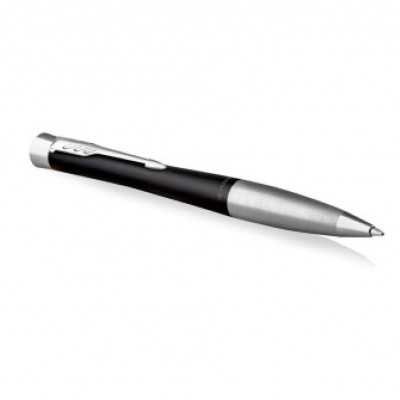 El bolígrafo Parker Urban Muted Black Chrome Trim es una pieza perfecta, por su robustez y la calidad de su escritura, para un uso diario sin que ello implique renunciar a un cuidado diseño de líneas curvas compuesto por cuerpo de metal recubierto de laca de color negro tenue, detalles cromados y boquilla de metal cepillado. Mecanismo giratorio para la extracción y recogida de la punta.