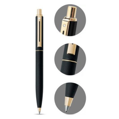 Bolígrafo negro mate con detalles en tono dorado