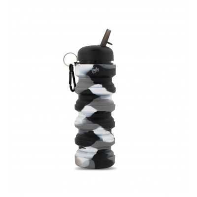 Flexible/plegable con forma de acordeón. Con pico vertedor y llavero para colgar de la mochila