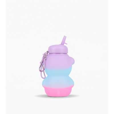 Al llenarla de liquido (preferentemente frío) la agrandas, y cuando ya no te queda nada, la achicas para guardarla donde quieras!! Con piquito de PVC, facil de limpiar! Ideal para llevar al cole y al club