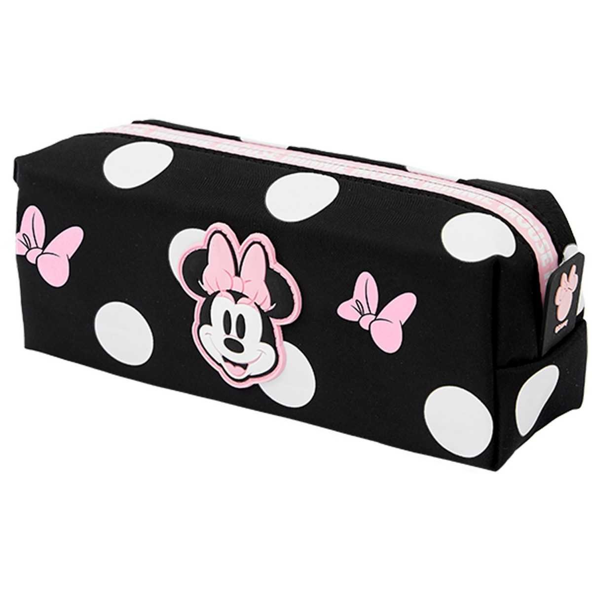 Canopla rectangular a lunares de color metalizado con dibujo retro de Minnie Mouse y logo. Cierre y costuras reforzados. Original artículo diseñado especialmente para los fans de esta simpática ratoncita.