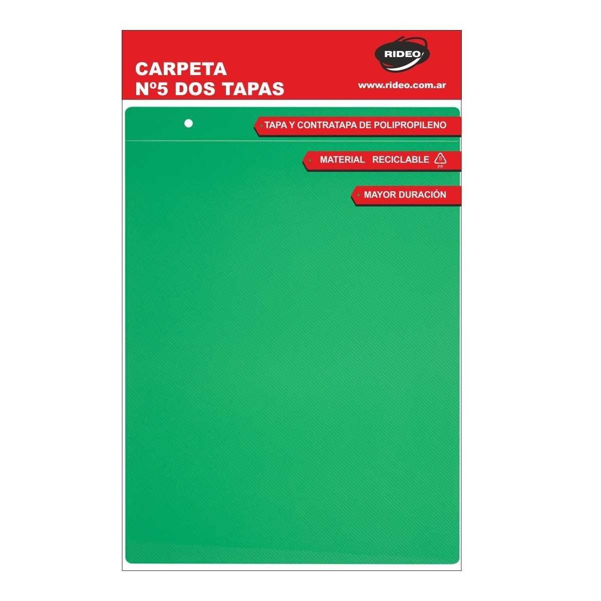 Carpeta Nº5 de dos tapas plástica lisa Rideo x colores