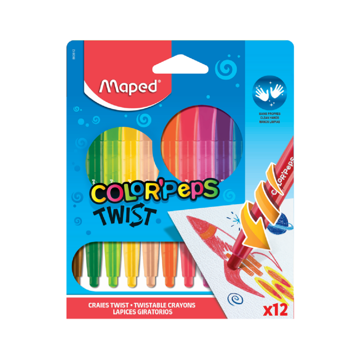 • Crayones de cera con sistema “Twist”: girar para sacar la mina
