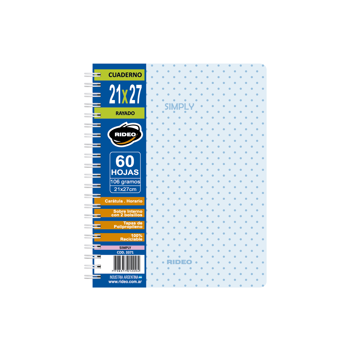 Vista rápida Cuaderno A4 Spring con elástico x 120 hojas cuadriculadas Rideo Precio $ 15.900,00 Carro Vista rápida Cuaderno 16x21 cm con espiral tapa dura Premium Wild x96 hojas FW Precio $ 11.900,00 Carro Vista rápida Cuaderno Oficio para Boceto 120 gramos emblocado Precio $ 16.900,00 Carro Vista rápida Cuaderno ABC x 48 hojas liso 19 x 23 cm Rivadavia Precio $ 8.500,00 Carro