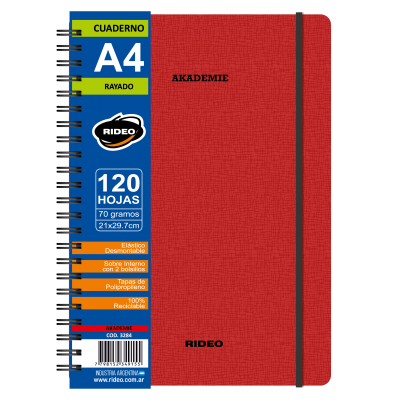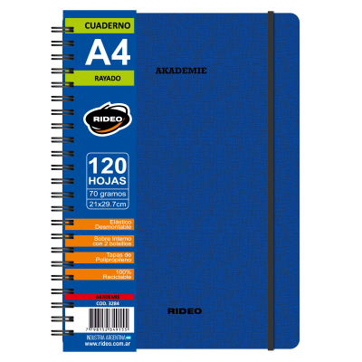 Cuaderno A4 Akademie con elástico x 120 hojas cuadriculadas Rideo