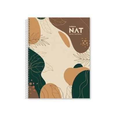 Cuaderno Espiral Tapa y contratapa semirrígida de Cartulina de caña de azúcar, sin blanqueadores químicos. Tamaño 21×27 cm. 80 Hojas Ledesma Nat de 75 gramos. Cuadriculado.