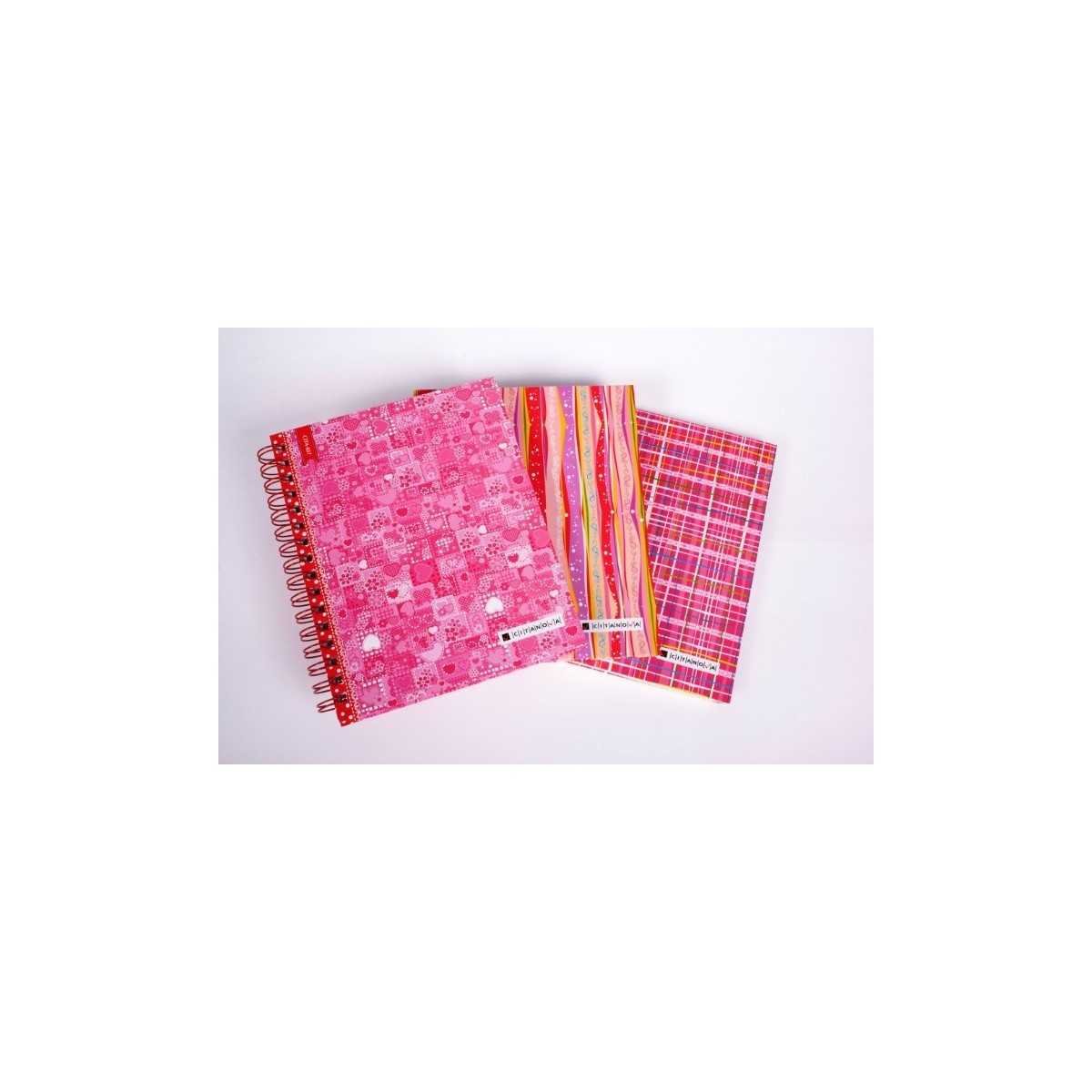 cuaderno rayado tamaño esquela con espiral y tapas rígidas con motivos