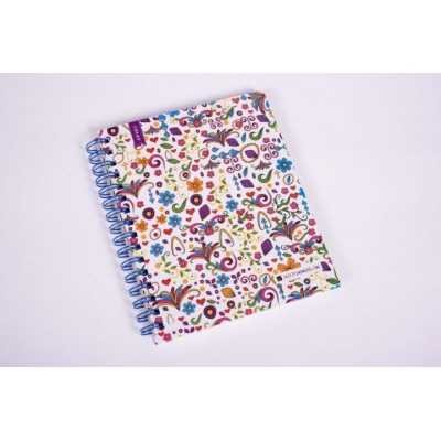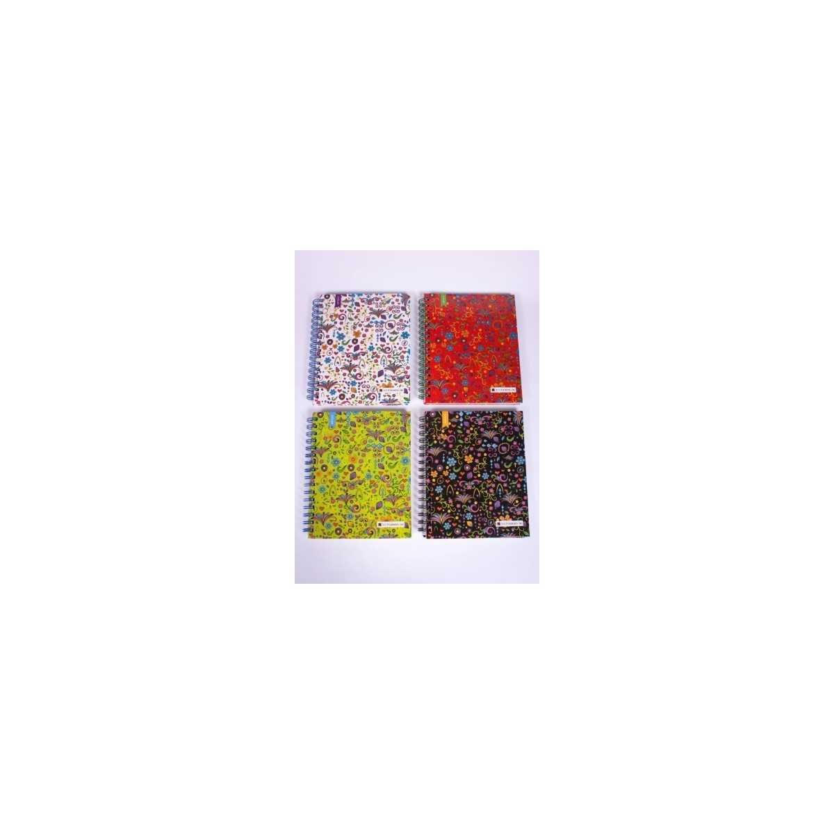 cuaderno rayado tamaño esquela con espiral y tapas rígidas con motivos
