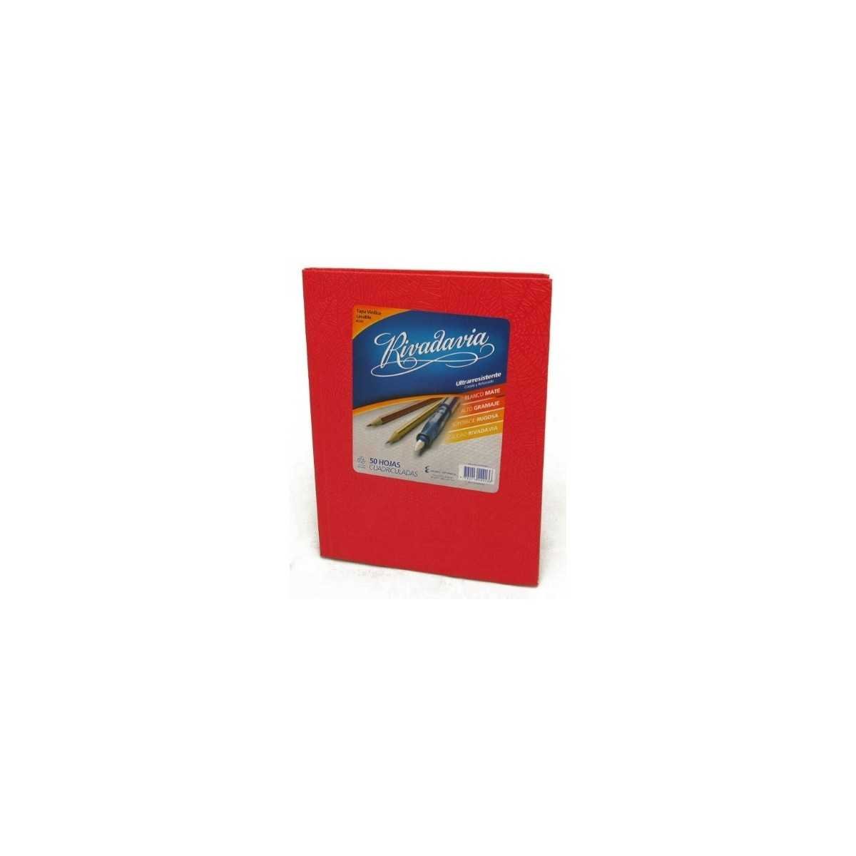 Cuaderno tapa de cartón x 50 hojas cuadriculado rojo Rivadavia
