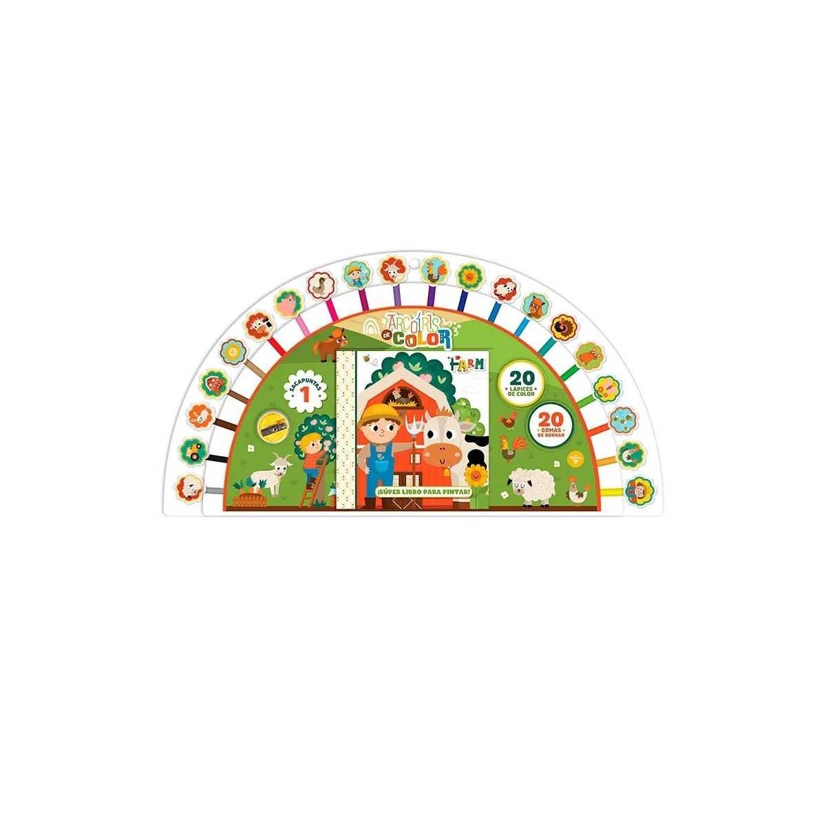 Set libro para pintar Arco iris de color + lápices de colores Animales de la granja Vertice
