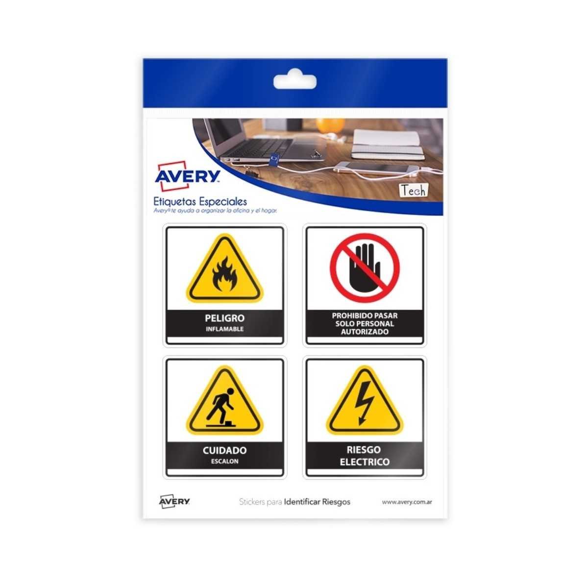 Stickers Avery para Identificar Riesgos. Impresos en Polipropileno que se adhieren sobre distintas superficies. Ideales para identificar zonas de riesgo y cuidado en lugares con acceso al público en general.