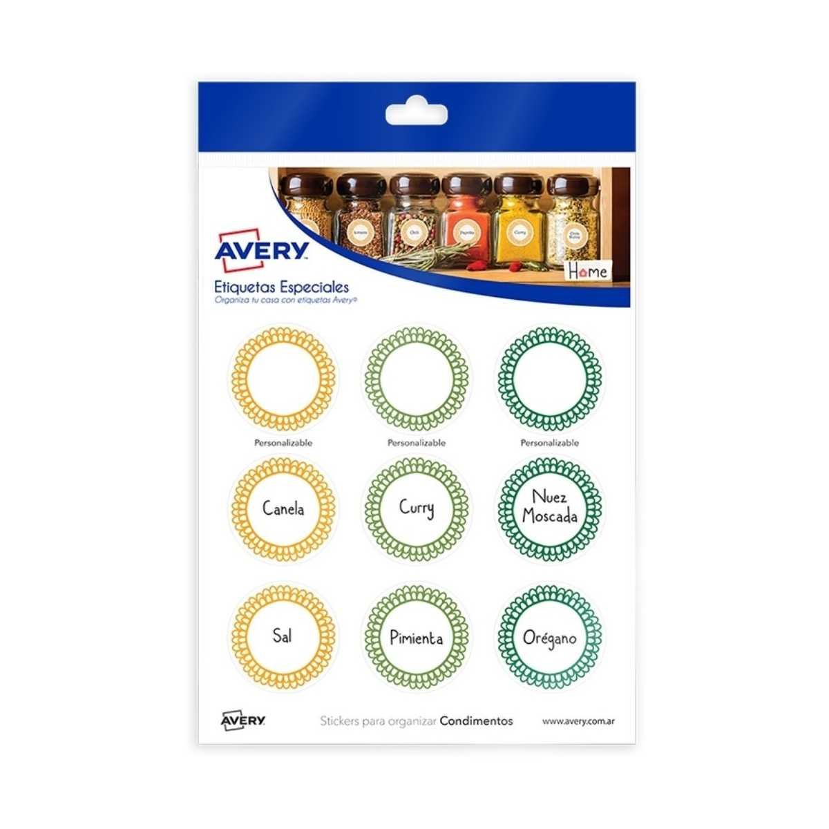 Etiquetas Avery para Organizar Condimentos – Etiquetas Avery de papel texturado – Incluye 3 Etiquetas para personalizar.