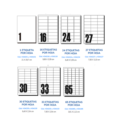 Las Etiquetas Húsares son fabricadas con papel extrablanco, con una superficie especial para la correcta absorción de la tinta o toner. Para impresoras Ink Jet y Laser.