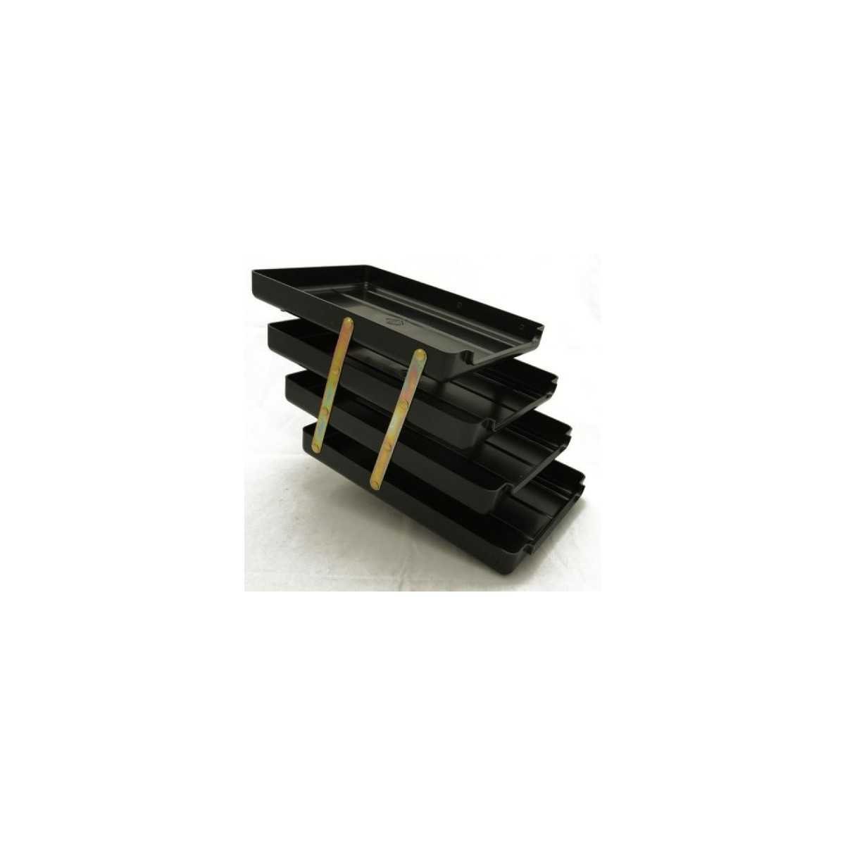 Bandeja plástica negra portapapeles de 4 pisos tamaño oficio.