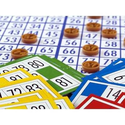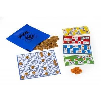 90 fichas numeradas, 1 saco plastico, 1 control de numeros de papel, 28 cartones, fichas plasticas anotadoras.