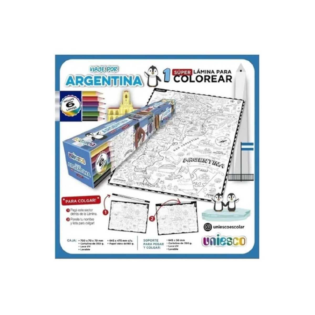 Lamina doble para colorear y pintar "ARGENTINA" Uniesco.