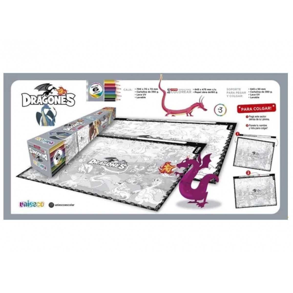 Lamina doble para colorear y pintar "DRAGONES" Uniesco.