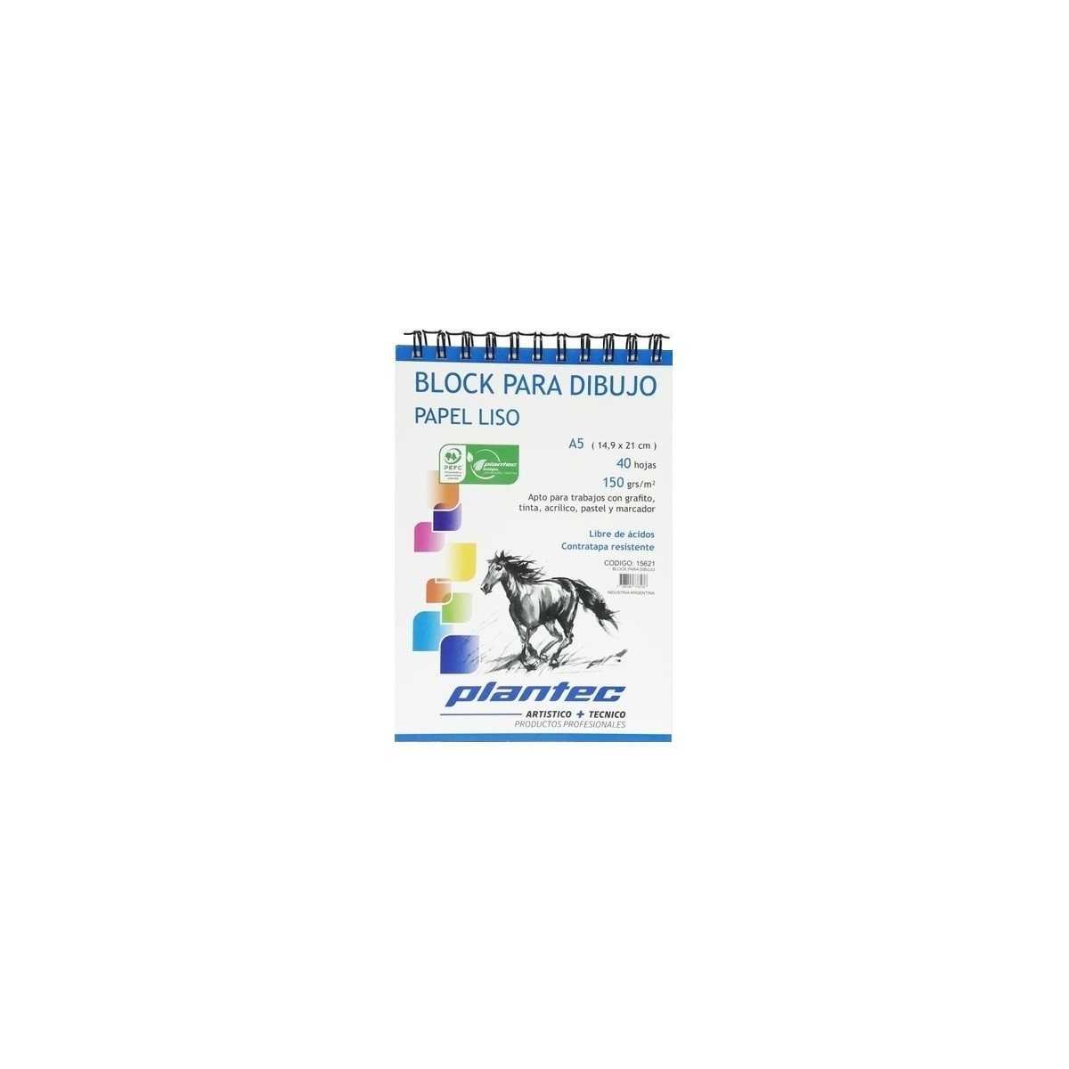 Block Dibujo Anillado A5 BLANCO LISO de 150 gramos x40 hojas Plantec