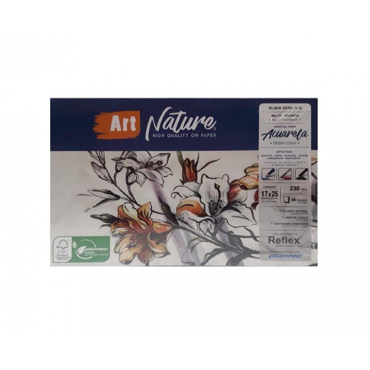 Block Multitécnica Acuarela 17x25 cm ART NATURE de 230 gramos x20 hojas Plantec