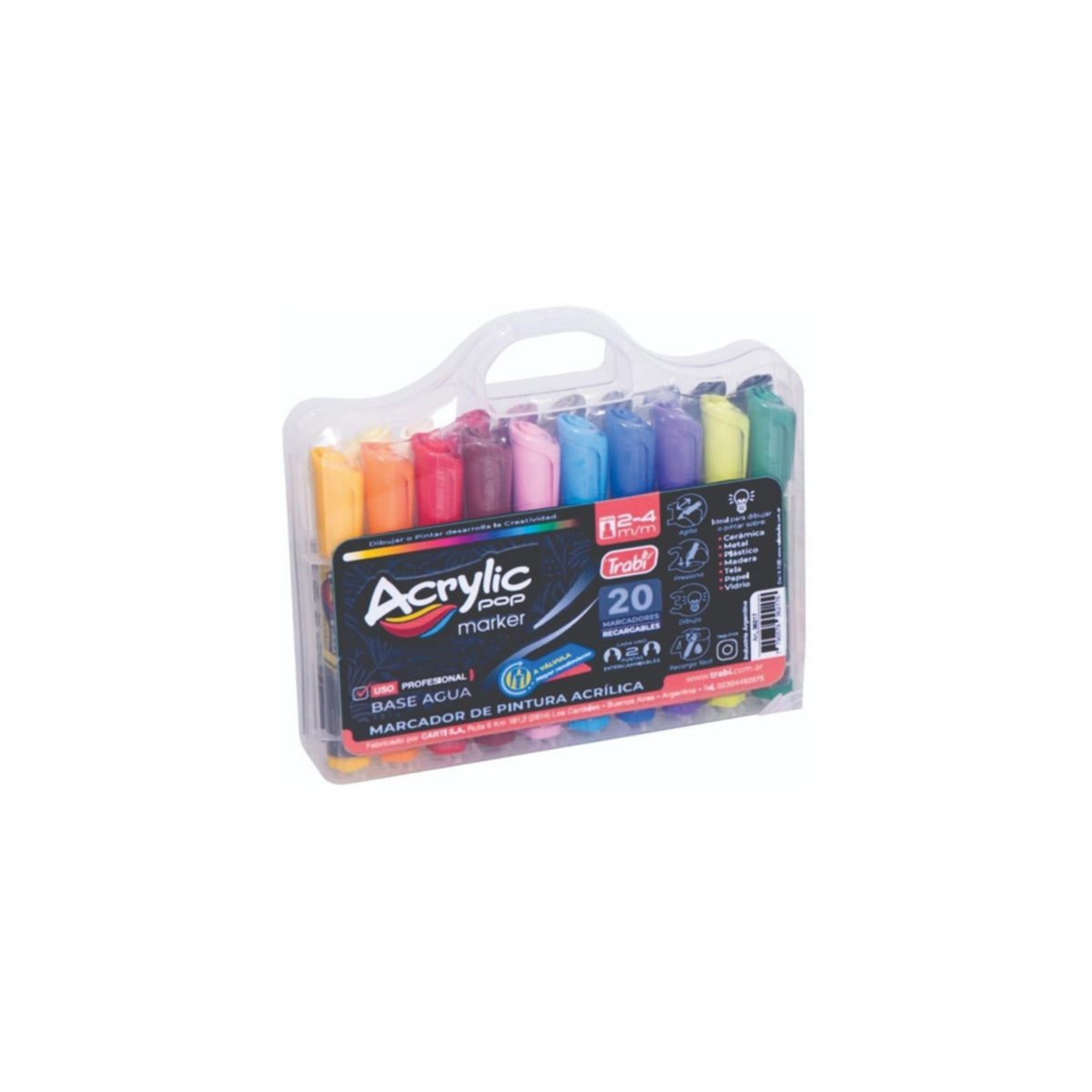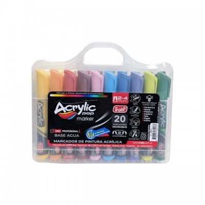 Set marcadores acrílicos doble punta de 2-4 mm (redonda y biselada) x20 colores surtidos Trabi
