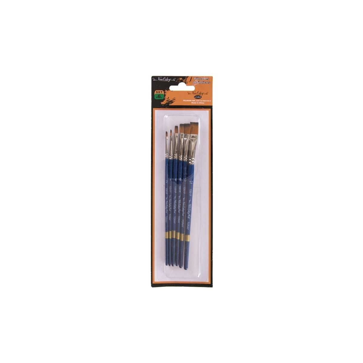 Set de pinceles sintéticos chatos x6 unidades N° 2-4-6-8-10-12 en blíster Van Orley