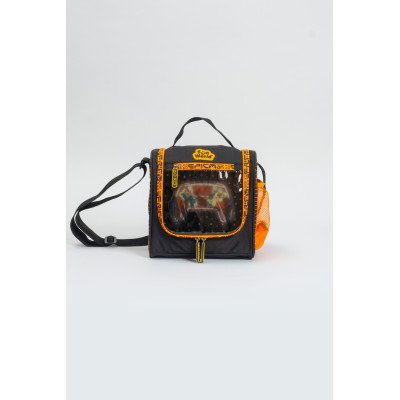 - Esta lunchera de diseño exclusivo cuenta con un amplio espacio para alimentos y una contención de red en su interior para mantener todo organizado. Tiene un cierre principal seguro y un pequeño cierre frontal para objetos adicionales. Además, incluye una correa larga ajustable y una manija corta para fácil transporte, Cierres con accesorio que le dan un toque de estilo.