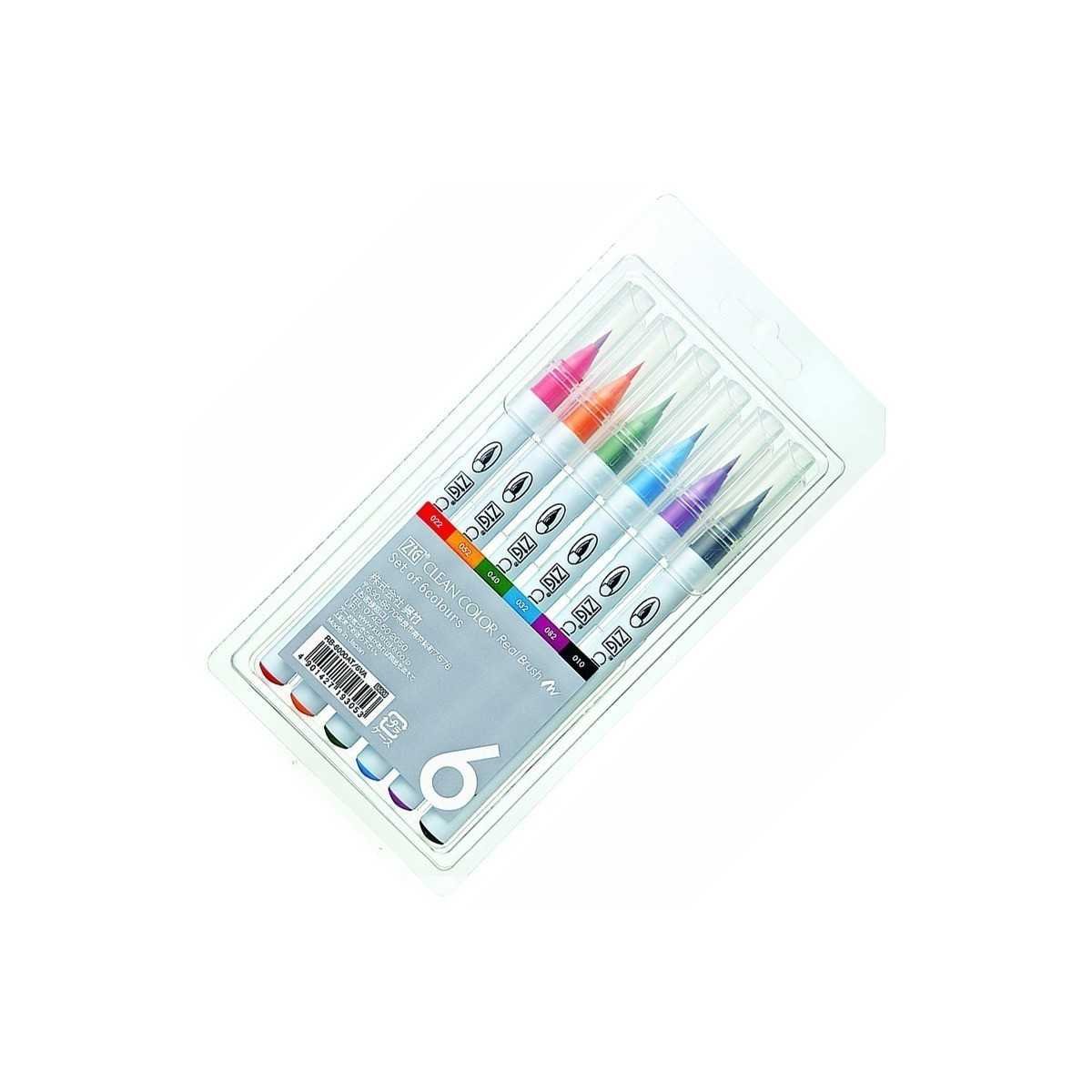 Set Marcador Acuarelable Punta Pincel Clean Color x6 unidades Kuretake