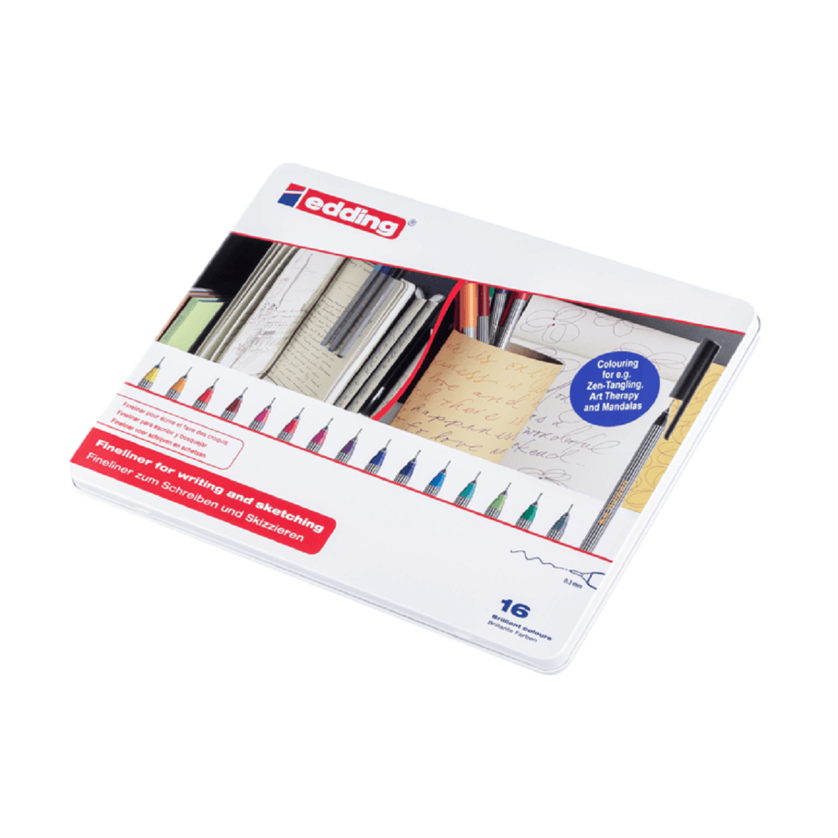 Set Microfibra al Agua Punta Extra Fina x16 colores en Lata Edding