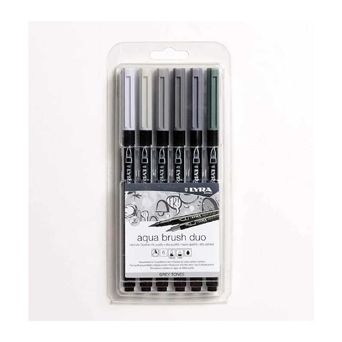 Marcador Acuarelable Aqua Brush Duo Tonos Grises x6 unidades Lyra