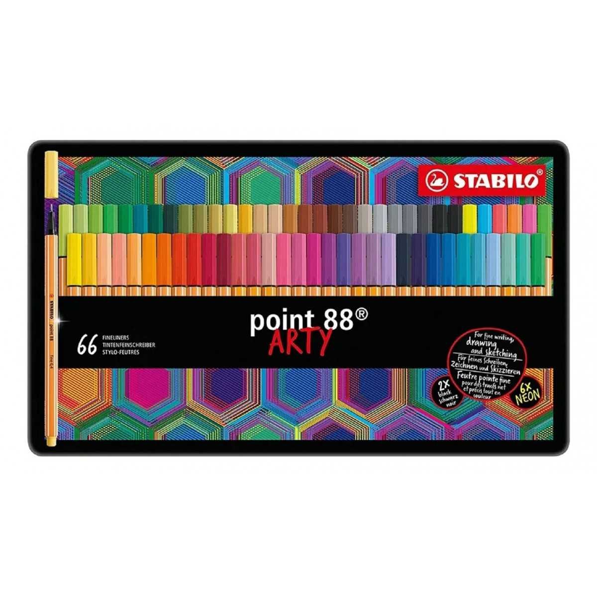 Set Microfibra Point 88 ARTY x66 colores en lata Stabilo