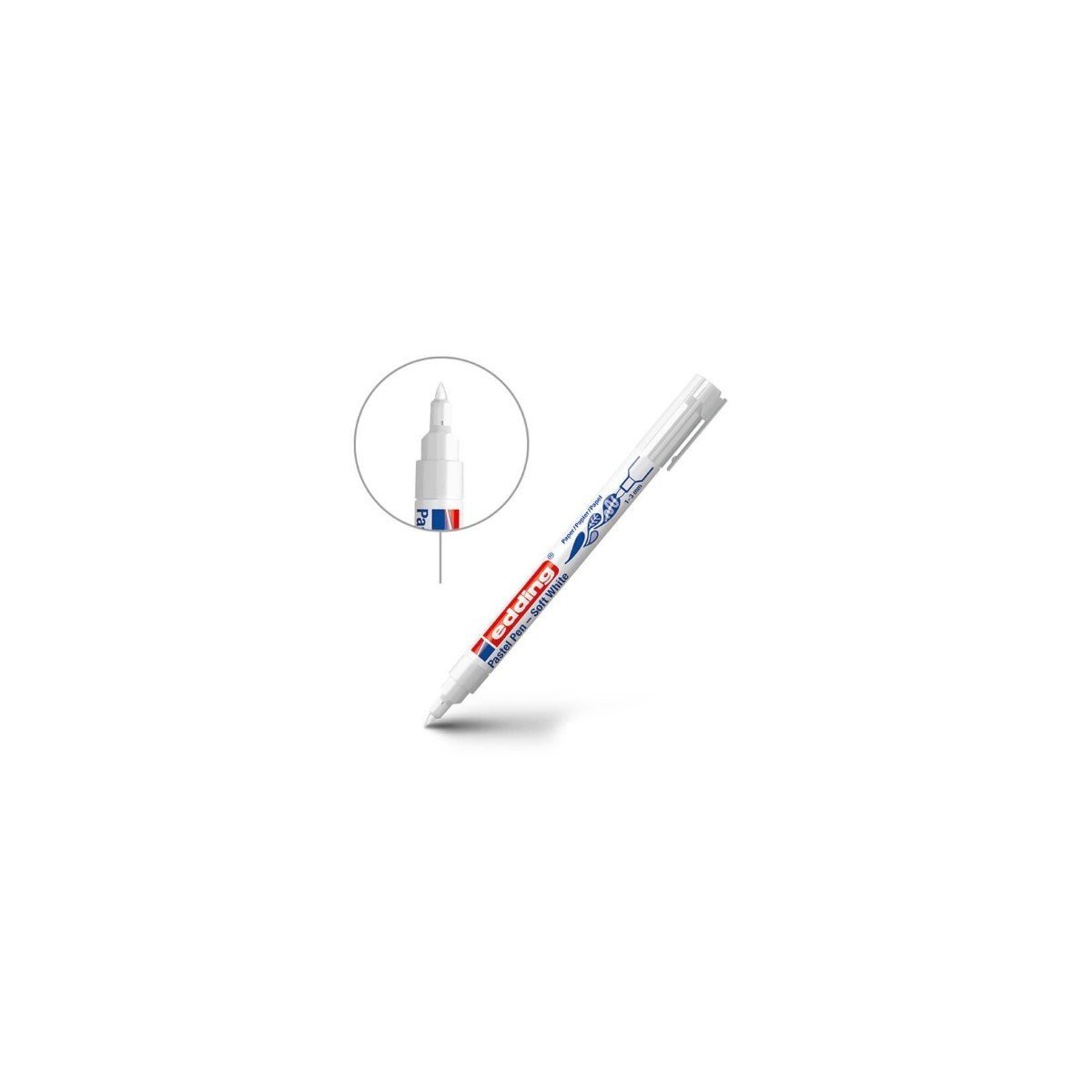 Rotulador de fibra para escribir y dibujar en color blanco semitransparente sobre papel oscuro o claro; también crea tonos pastel en combinación con rotuladores de fibra edding, p. ej., e-1340, e-1300 y e-1200