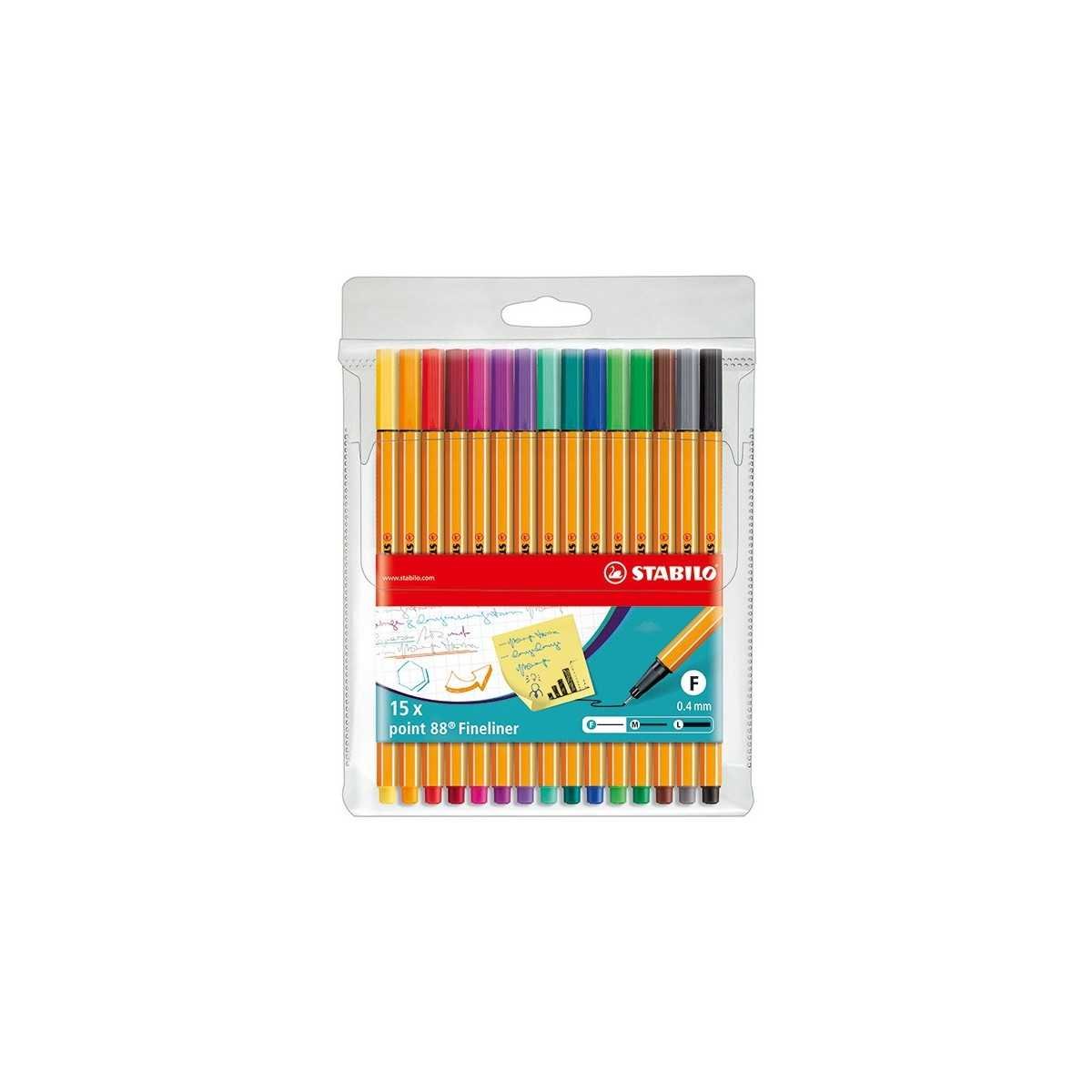Set Microfibra Point 88 x15 colores (12+3 de regalo) estuche plástico Stabilo
