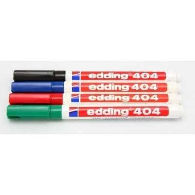 Micropunta permanente punta redonda recargable. Está disponible en cuatro colores, lo que ofrece muchas opciones a la hora de rotular toda clase de plástico, madera, metal, vidrio o cartón. El Edding 404 marcador permanente, resistente al agua y a la luz, de secado rápido y casi inodoro es la mejor solución para la rotulación o marcado más fino.