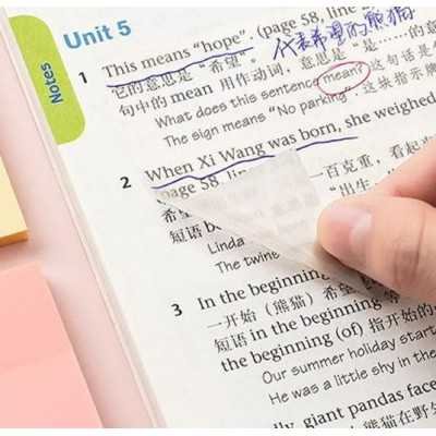 Nota autoadhesiva transparente Memo Fix. Venta de a 1 blister conteniendo 1 block x 50 hojas adhesivas cristal.