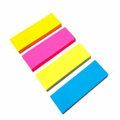 Blister con 4 Block x50 hojas autoadhesivas, medidas de cada bloque 25x75 mm en colores fluo (neón)