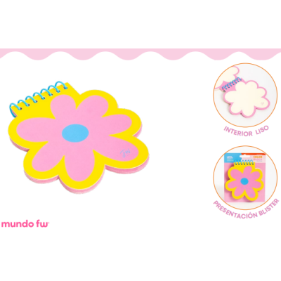 Libreta con forma de flor, espiralada y con diseño full color. Cuenta con tapas de 300 g y 30 hojas de papel de 120 g, ideal para escribir, dibujar o regalar. Su tamaño de 12 x 12 cm la hace práctica y llamativa, perfecta para sumar color a tu escritorio.