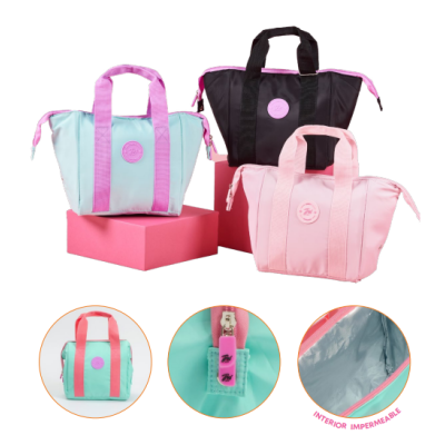 Lunchera con apertura tipo boca de pez, dos correas de mano, interior impermeable y aislante. Práctica y funcional para llevar tus comidas. Variantes de color: rosa,aquea y negro. El precio publicado corresponde a una unidad.