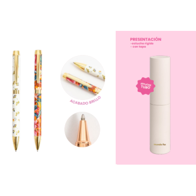 Bolígrafo retráctil con tinta azul con acabado de brillo . Incluye un estuche tubo con tapa para un toque elegante y sofisticado. El precio publicado corresponde a una unidad.