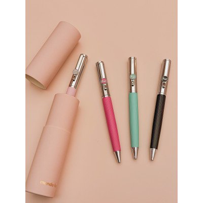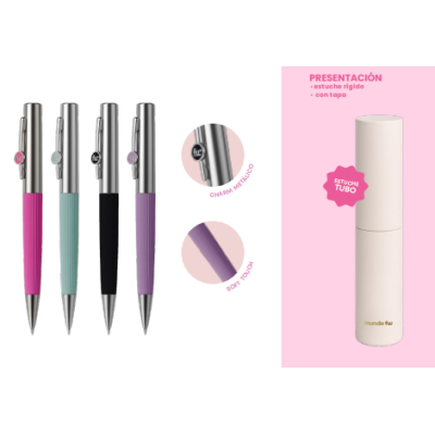 Bolígrafo con tapa y tinta azul, con acabado mate soft touch . Incluye estuche de tubo con tapa para un toque elegante y sofisticado. El precio publicado corresponde a una unidad.