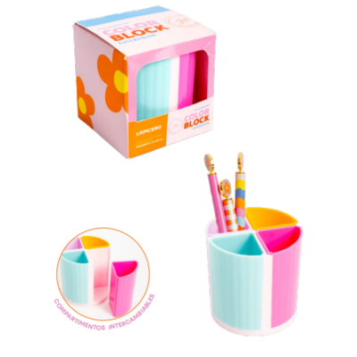 Lapicero de 1 pieza por color, con compartimentos intercambiables. Práctico, versátil y ideal para organizar tu escritorio. Se vende sin lapices.