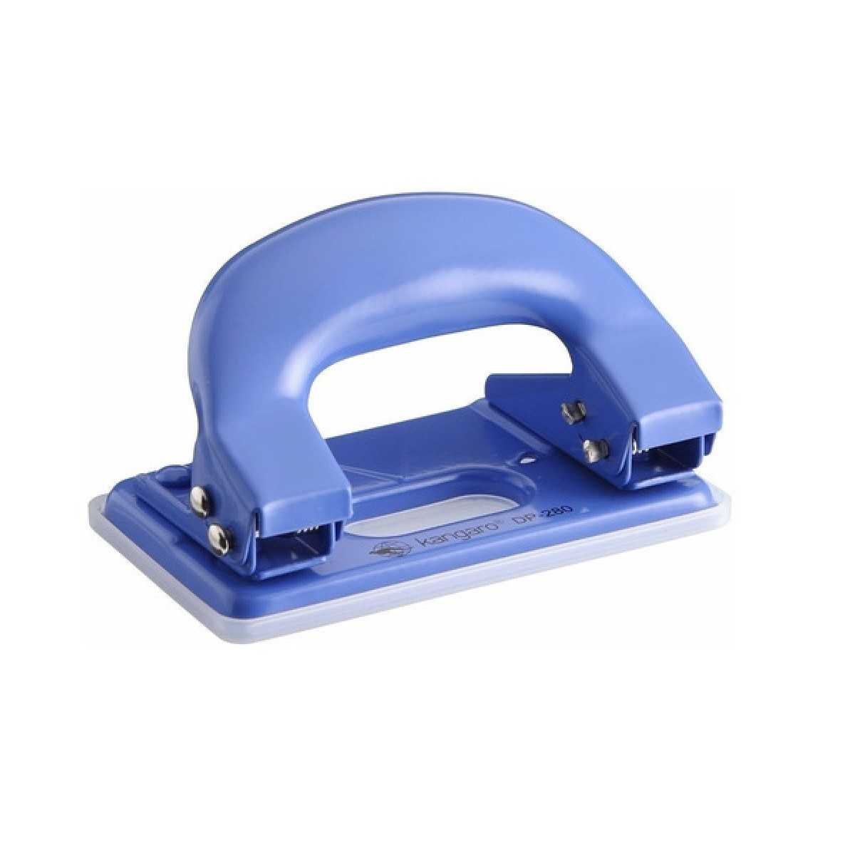 Perforadora Kangaro DP-280 chica, metálica, para escritorio, capacidad de perforado: 11 hojas. Distancia de perforado: 80 mm. Diametro del punzon: 5.5 mm.